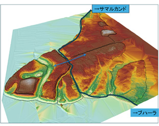 | 図2 ゼラフシャン中流域の地勢とシルクロード復元 | ||