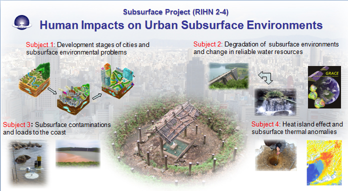 当プロジェクト(都市の地下環境に残る人間活動の影響)では、『都市の存在』に起因する環境問題に対して人間活動の