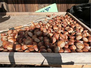 Furthermore, abundant food resources from the forests and mountains have supplemented their subsistence: edible wild plants, chestnuts, walnuts, acorns and mushrooms. Nuts have been important preserved food items for the local people. In the old days, acorns were eaten after leaching. Chestnuts are commonly dried and stored even today. As we were saying goodbye to Tomiij-san and Aki-san, we passed by some chestnuts hung and dried under eaves of their house. Such glimpses of their traditional customs were ingrained as a part of their daily life provide us with an invaluable insight about the link between food diversity, traditional ecological knowledge and people’s identity.