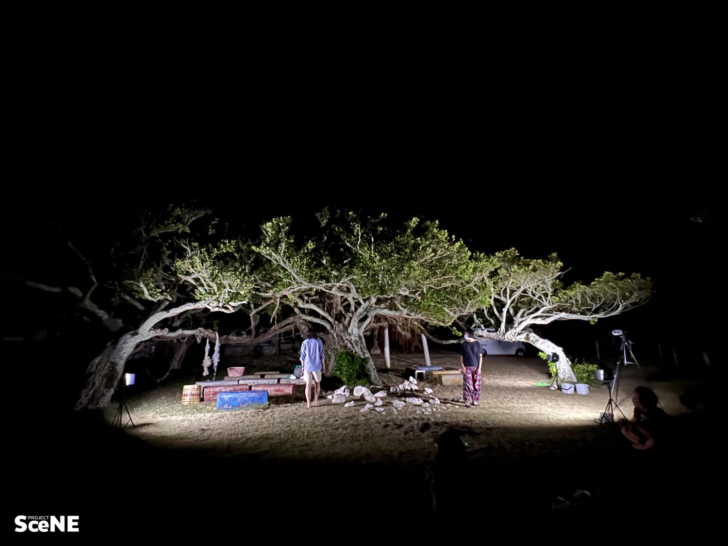 この研究では、演劇をはじめとしたアートの手法を取り入れ、異分野の研究者や地域のステークホルダー、異なる世代間において、エンパシーの獲得と未来思考の協働作業の促進を目指すための方法の開発と実践を行っています。これまでの研究ではモデル地域である喜界島において、過去の環境と社会の変革点における仮想SceNE(時代の窓)を演劇の舞台に設定し、異なる時代と環境下における人と環境の関係性について高解像度のイメージが共有できることがわかりました。また科学とアートを融合するために、科学的な概念をアートで表現する方法の実践を研究者とアーティストが対等に話し合いながら進めています。