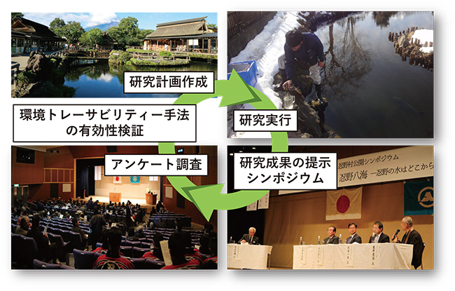 調査地において環境トレーサビリティー手法を用いた研究を実行し、その成果をシンポジウム等を通じて広く住民に紹介した。同時に、シンポジウム会場においてアンケート調査を実施し、環境トレーサビリティー手法の有効性を検証した。