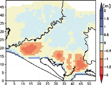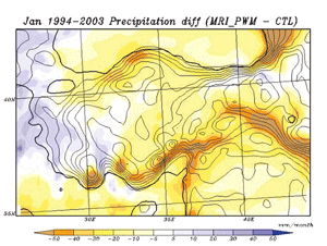 最新の気候モデルと温暖化実験手法などを用いて、2070年代の気候変化を見通した結果、セイハン川流域では気温は2~3.5℃上昇し、降水量は夏を除いて20%程度減少する可能性が示されました。