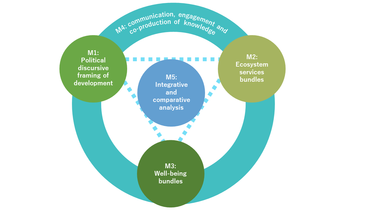 研究地域は、森林被覆、生態系の多様性、不平等と人間のウェルビーイング、制度的・政治的統制、政策プロセスにおける民主主義と市民社会の関与など、生態系・社会的・制度的に多様でユニークな状況を提供しています。これらのアプローチを組み合わせることで、衡平性、生態系サービス、ウェルビーイングを評価するための理論や新たな手法を発展させ、今もなお多様なランドスケープに生計とウェルビーイングを依存している何百万もの人々にとってより衡平で持続可能な開発の道筋を可能あるいは阻害する条件を明らかにすることができます。