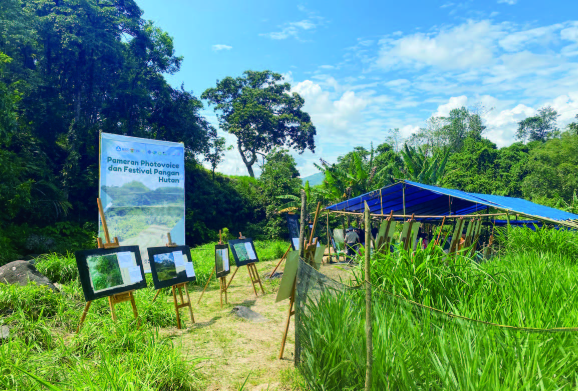 モジュール 4 の一形態としてフォトボイス(photovoice)というアプローチを用いました。インドネシア・スラウェシ島の参加者は、国の利益が優先される景観において、⾃分たちのフラストレーションや希望を、写真とストーリーで表現しました(Sahide et al., in review)。参加者は、ハサヌディン大学のパートナーの支援を受けて展示会を開催し、政策立案者たちと熱い対話を繰り広げ、彼らの慣習的権利の承認を求めました(写真 1 )。