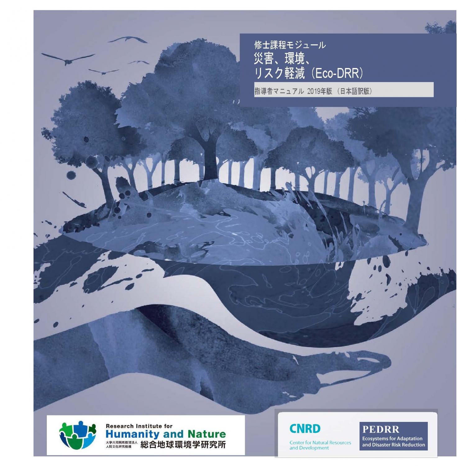 CNRD(天然資源開発センター)とPEDRR(環境と災害リスク削減のためのパートナーシップ)は、Eco-DRR(生態系を活用した防災減災)に関する修士課程向けの教材をつくり、世界の多くの大学などで授業に使われています。その教材の指導者マニュアルの日本語訳版、および、参考資料であるソースブックの日本語訳版を、Eco-DRRプロジェクトで作成しました