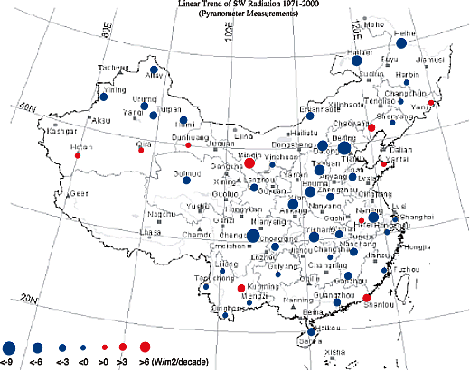 As a result, aerosol loading increased with an increase in fossil fuel consumption in China and other Asian countries and air pollution increased, and thus surface shortwave irradiance decreased. However, the surface air temperature increased in almost all regions of China for the past 40 years, because of increasing greenhouse gases and complicated climate system.